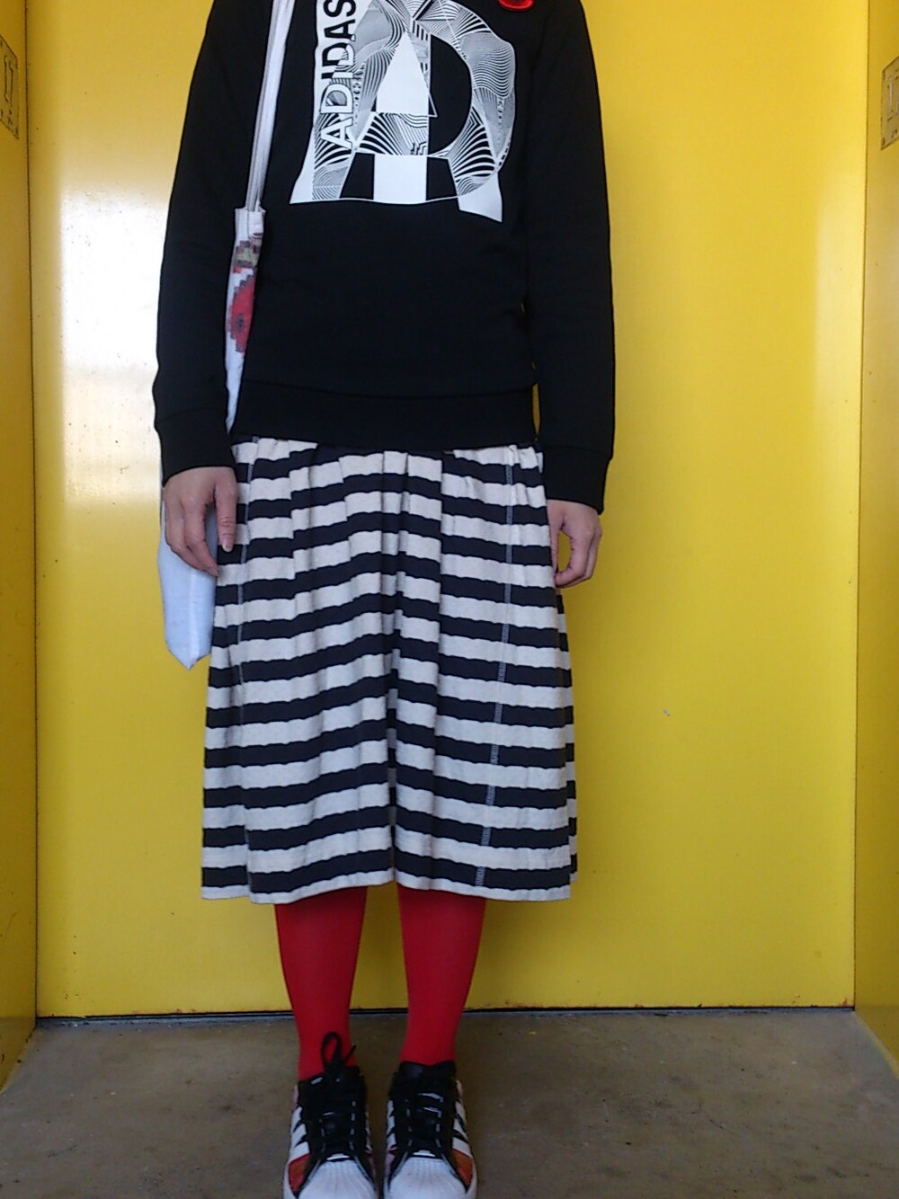 top: Adidas one-piece: Uniqlo tights: 不明 shoes: Adidas Super Star bag: YSL tote bag