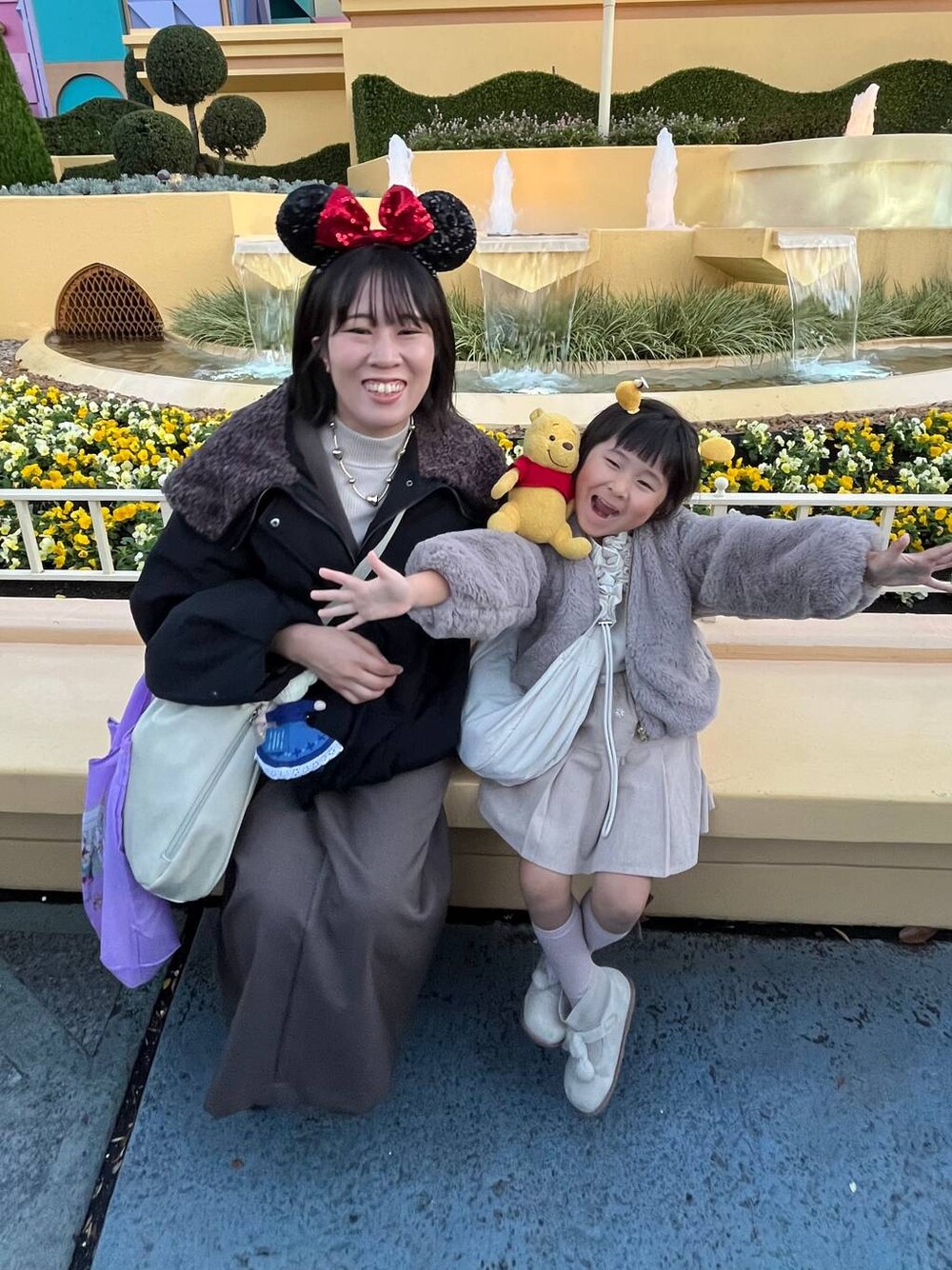 フード付きモコモコアウターを着てディズニー行ってきました✨ 110でジャストサイズ、120でややゆったりでした! さほど大きさに差がなかったので来年も着れるであろう120を購入🫡 この日の千葉はあったかくて上着は朝晩しか着なくていいくらいだったけど、冬コーデにはとっても映えるカラーとモコモコさが良かったよ♡