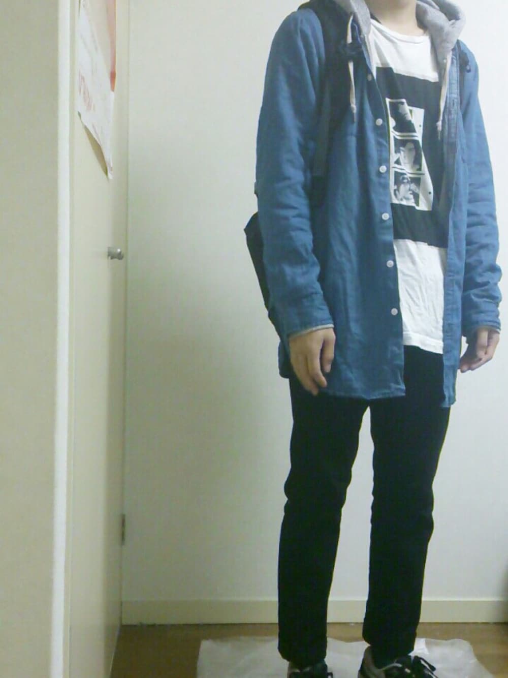 ロングシャツをアウターにしためちゃくちゃコーデ、寒い