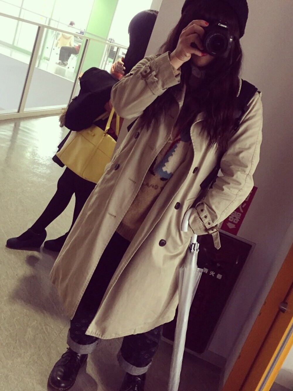 ベージュ系のニット/セーターを着用したレディースの冬コーディネートの1枚目の写真