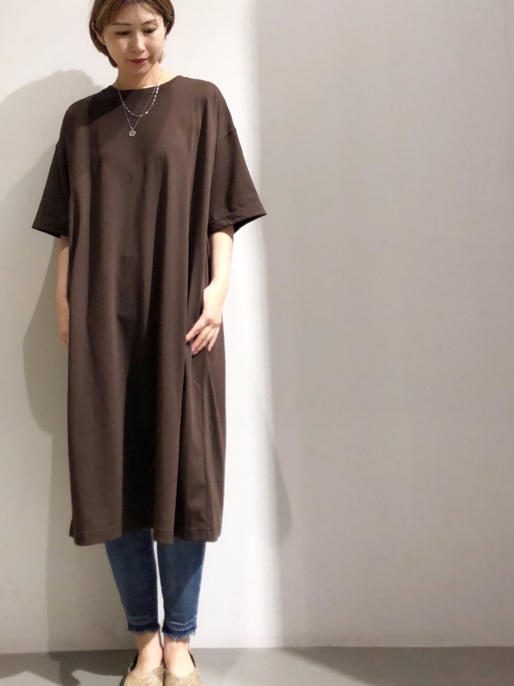 ❤︎いつものTワンピ❤︎ いつものTワンピもお色味をブラウンにすることで一気に秋めき🍂◎ 袖口がゆったりな五分袖は見た目より涼しく、袖を折ることでこなれ感も❤︎ 季節の深まりと共にアニマル柄の小物をちょい足しするとなお◎ 長く着れる1枚です☻☻