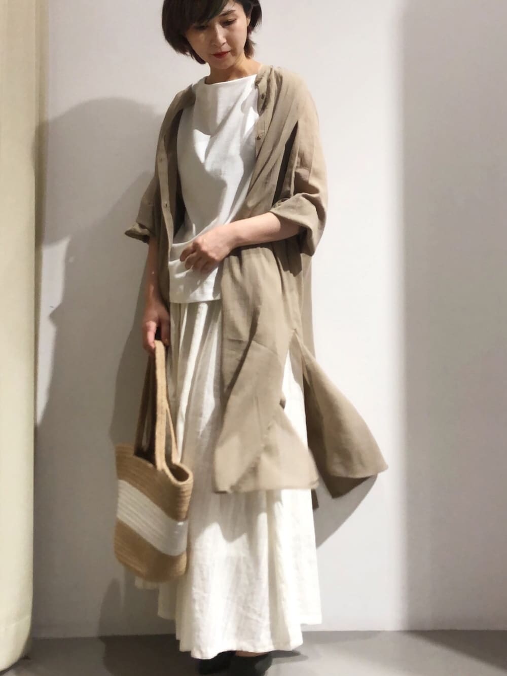❤︎ミルクティーコーデ❤︎ シャツワンピを羽織にワントーンで❤︎ このシャツ実は後ろにもボタンがあり、背中のボタンを開けてもとっても素敵✨ 気分や合わせるアイテムによって使い分けしてみて☻☻