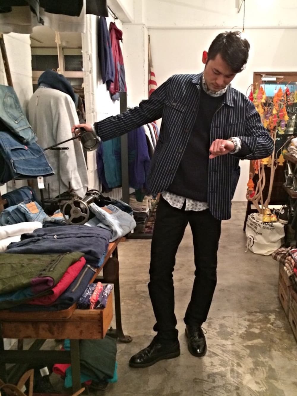 今日のテーマはキレカジ。 昨日はストリートだったので、色味を抑えて大人っぽくキレイに仕上げてみました。 柄シャツにニット、ストライプジャケットと落ち着いた印象になってますか? 自分も良い歳ですからTPOに合わせたスタイリングを意識しています。 寒いのも今日まででしょうか、明日は釣に出掛けます。 BIGな魚が釣れることを期待して、それではまた明日。