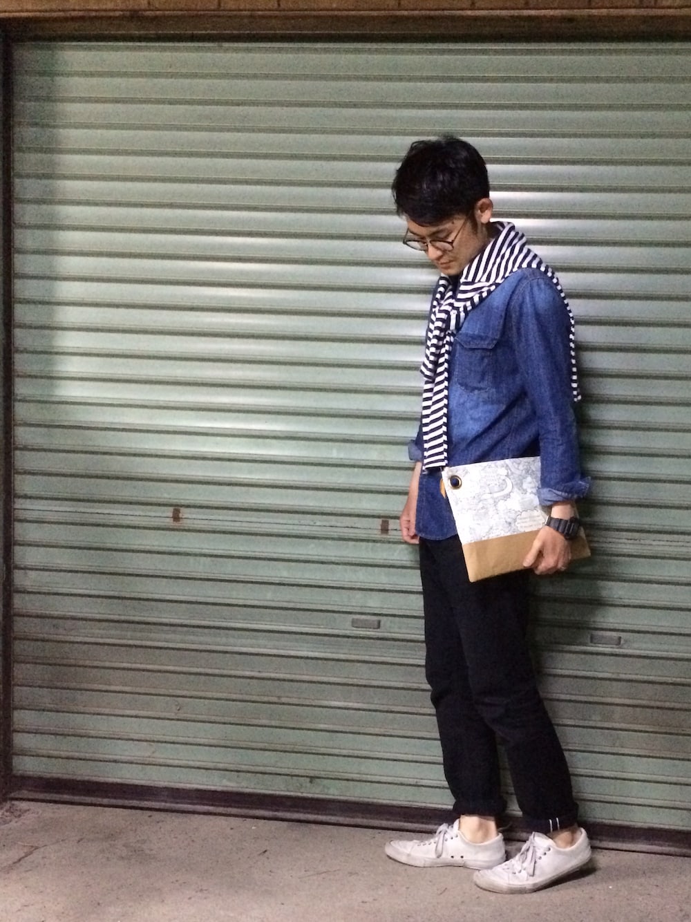 今日のテーマはクラッチバッグ。 Popな柄のクラッチバッグには少し洒落た格好が似合うかなと思い、定番化したプロデューサー巻きで。 青と白のコントラストを意識して綺麗に見せるように意識しました。 日中街中を歩いてカフェでも行きたいそんな気分の時にこんなスタイリングなんてどうでしょうか? 今年はデニム、TPOに合わせてデニムを替えていってはどうでしょうか? いつもいいね、セーブ、フォローありがとうございます‼︎