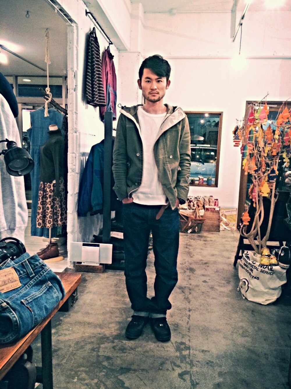 TAKEのデニムパンツを使ったコーディネート