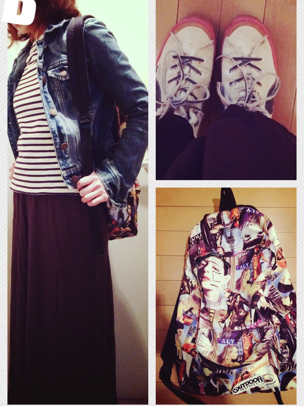 ジージャン AMERICAN EAGLE ボーダーシャツ NIMES スカート H&M スニーカー puma リュック OUTDOOR