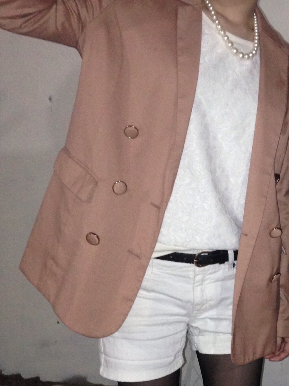 ちょっと前の。 白 × 白 + ピンク 足を出すのは まだはばかられるから タイツ。笑 ズボン変なことなってるけど