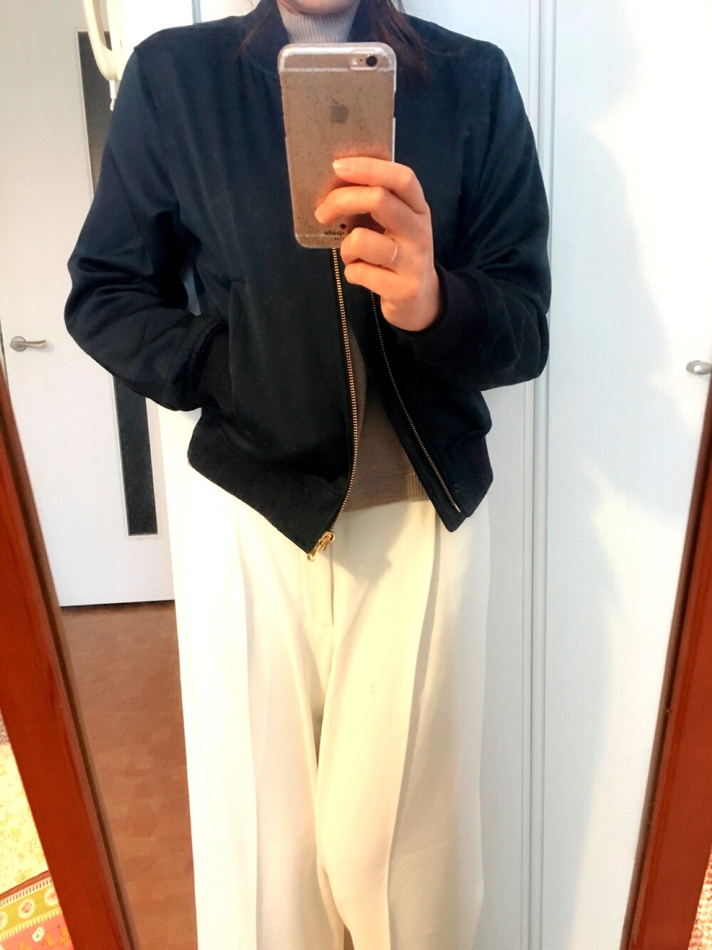 UNIQLOのこの子は使える子❤︎ 髪のリボンゴムもMA1と同じ色で❤︎