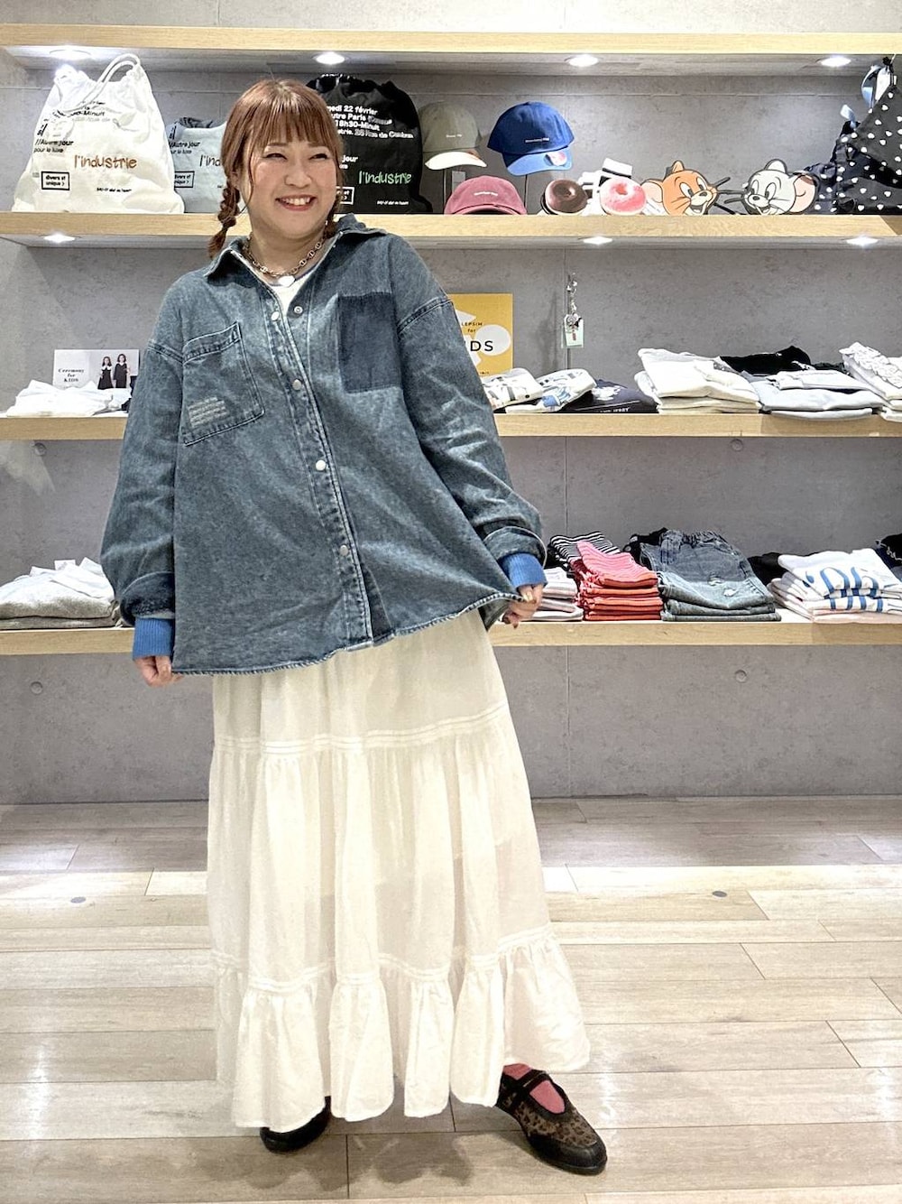 ばなおりです! 158センチ 44歳 ぽっちゃりです!! ーーーーーーーーーーーーーーーー ⭐︎刺繍BIGデニムシャツ 人気のデニムシャツ、今年も登場しました!! 去年と比べて、少しコンパクトに!そして少し張りがある生地感にかわりました!! そのため、ルーズになりすぎずに大人が着やすいデニムシャツです!! ⭐︎12ゲージ袖配色プルオーバー3 伸びやかですべすべの肌心地 程よい厚みで、インナーとしてはもちろん、一枚でも着られるニットです🧶 ⭐︎CRティアードスカート ふわっと軽やかなスカート ウエストゴムで、楽に穿けます!! 可愛すぎると感じる方は、長めのトップスと合わせて、ふわっと感を抑えると👍 ⭐︎ストラップバレエスニーパー 軽くて、柔らかくて、歩きやすい!! ぜひこちらは試して欲しい!! お仕事で履いていて、足が疲れにくいです😊 ⭐︎⭐︎Instagramも随時更新しています⭐︎⭐︎ こちらもぜひ遊びに来てくださいね🤗 ↓ ↓ ↓