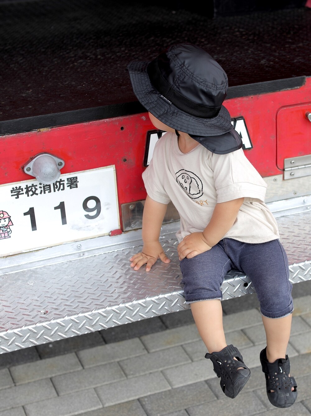 はたらく車、特に消防車が大好きです! 防災センターの自由に乗れる消防車は最高のテーマパーク。笑 人も少ないから助かります☺️笑