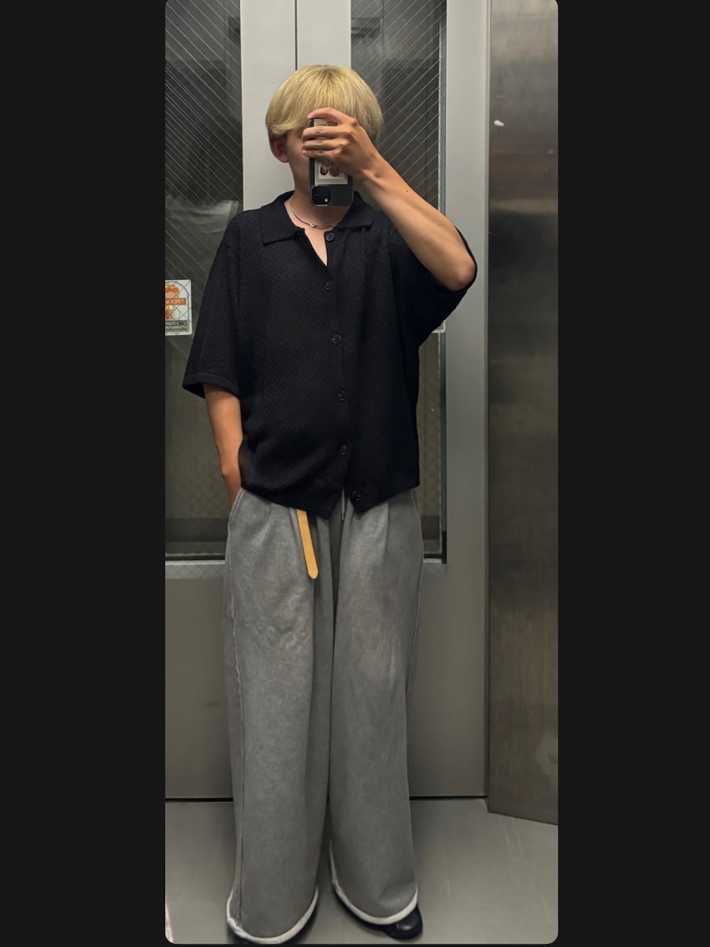 B/低身長コーデのシャツ/ブラウス「Half sleeve mesh knit shirt / ハーフスリーブメッシュニットシャツ」を使ったコーディネート