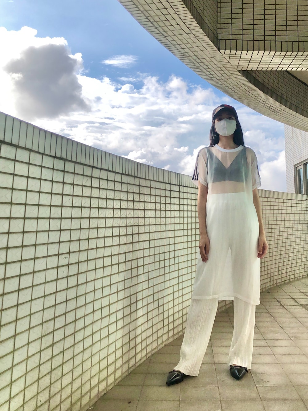121のワンピース「Adidas adidas Originals Black Midi Dress With Sheer Mesh Overlay」を使ったコーディネート