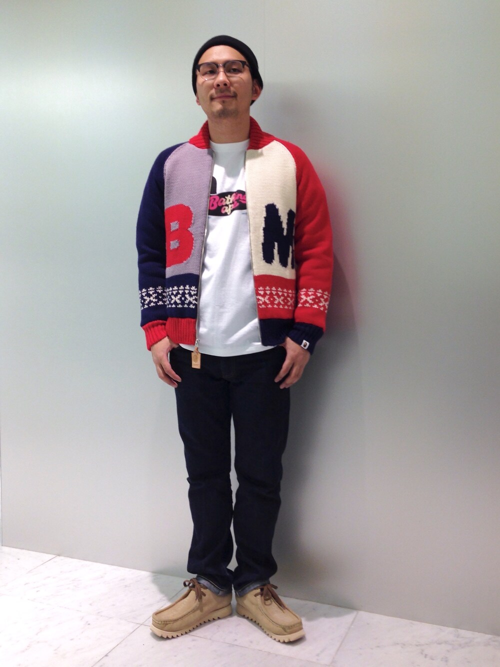 フロントのBMが象徴的なカウチンニットにマンハントブーツを合わせてアメカジスタイルです。 カウチンにはライニングが入っているので防寒性も抜群です。