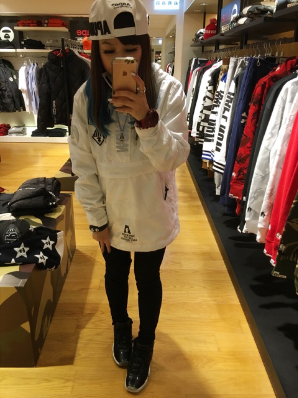 珊珊💖のナイロンジャケット「AAPE HJ HOODED JACKETS:ジャガードカモ ハーフジップジャケット」を使ったコーディネート