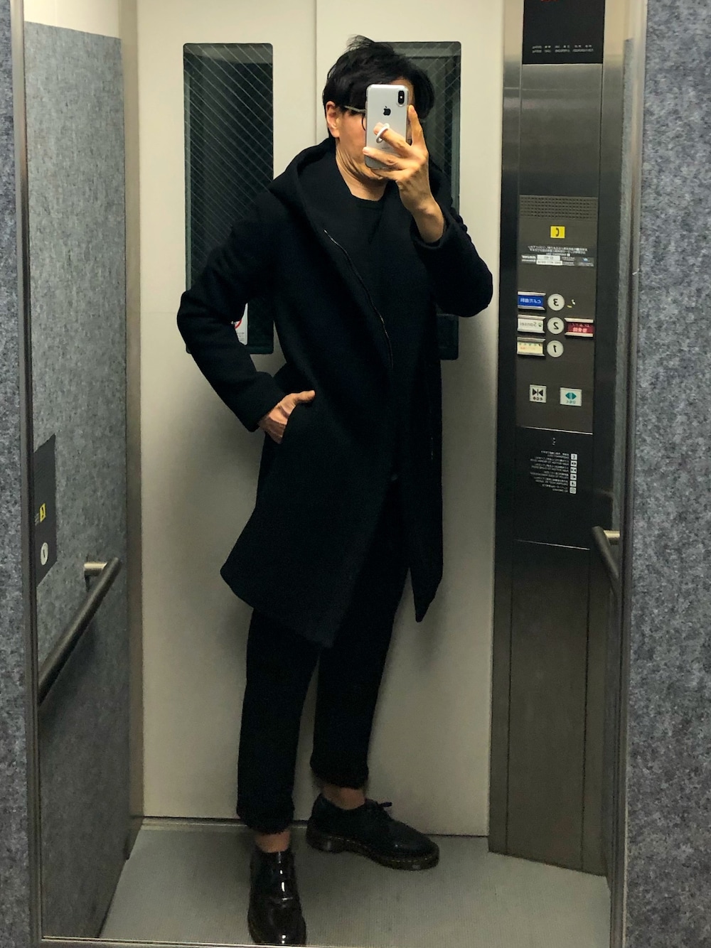 Elevator Boyのステンカラーコート「WRAP COAT」を使ったコーディネート