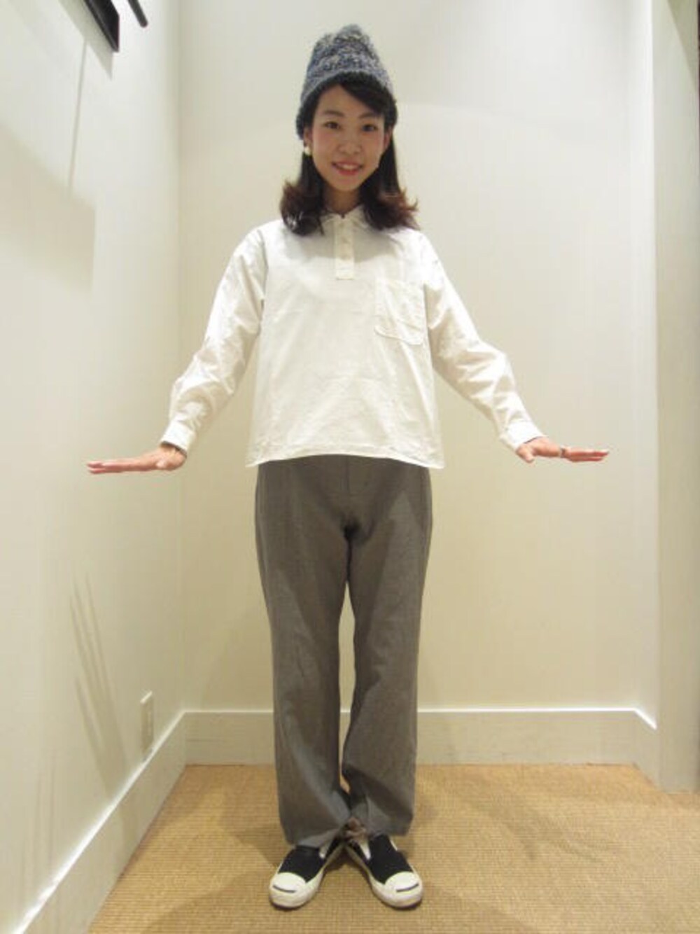 YAECAのシャツとYAECAのスラックスでーす! スラックスかなり長めなのてサスペンダーで吊ってます(笑) シャツが短めでいまっぽい! YAECAのシャツはシーズンごとにデザイン、形が少し違うところに惹かれます。