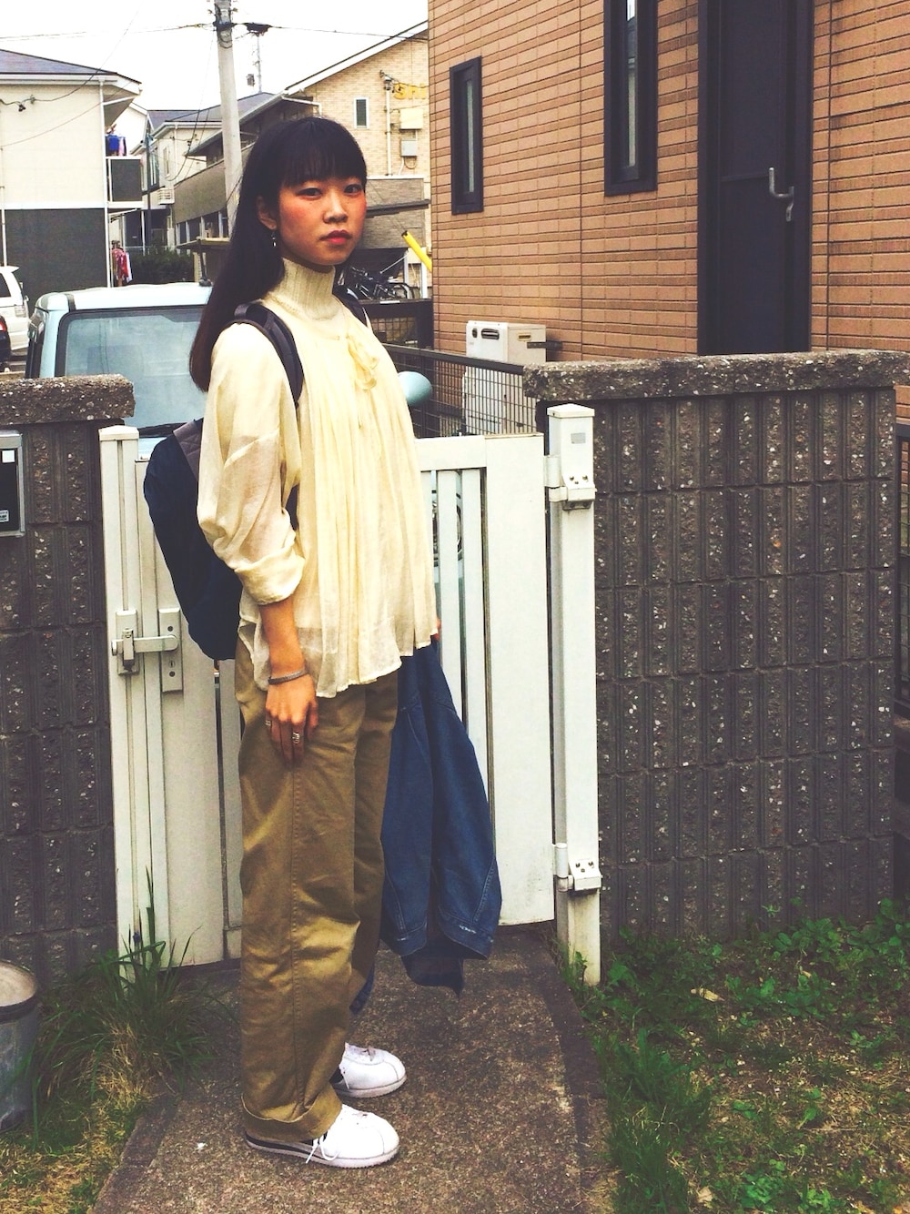 休日ゆるっとコーデ! 太チノパンがおきにいりです。 だぼっとしっかり長さをとって 白スニーカーに合わせるのがかわいい〜 ブラウスはマドモアゼルです。 中に着たハイネックは半袖タイプ。 もうちょっとあったかくなったら 一枚で着たい^_^