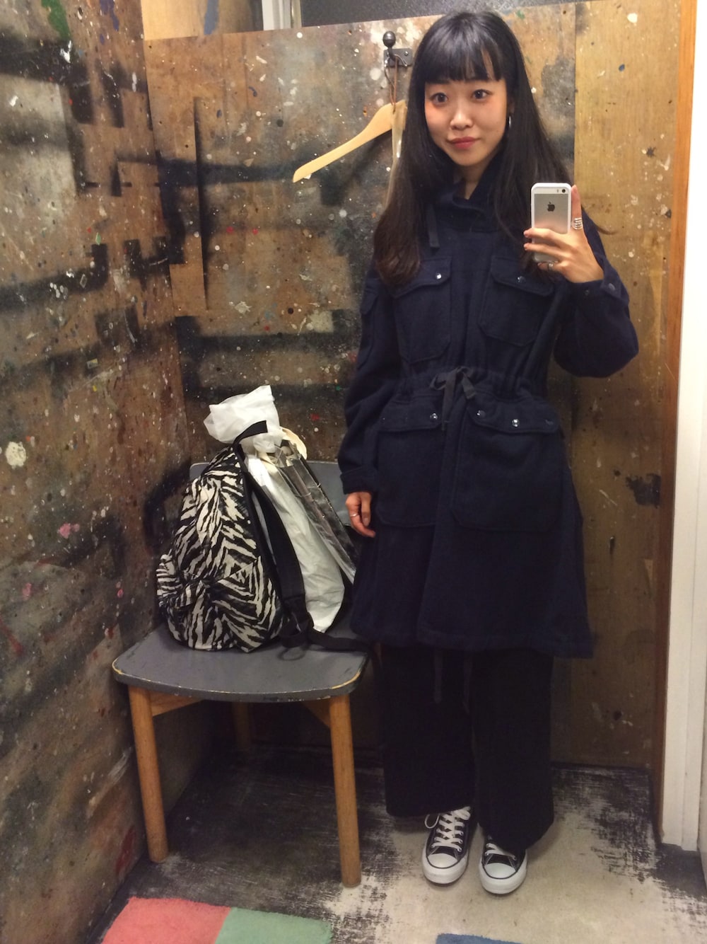 土曜日はFNOへいってきました〜〜 有名人だらけでした笑 東京たのしーーー。 名古屋に帰り、今日は仕事です(._.) ENGINEERED GARMENTSでの1枚。 今一番欲しいアウターーー 被るアウターって素敵! バッグジップも最高です。