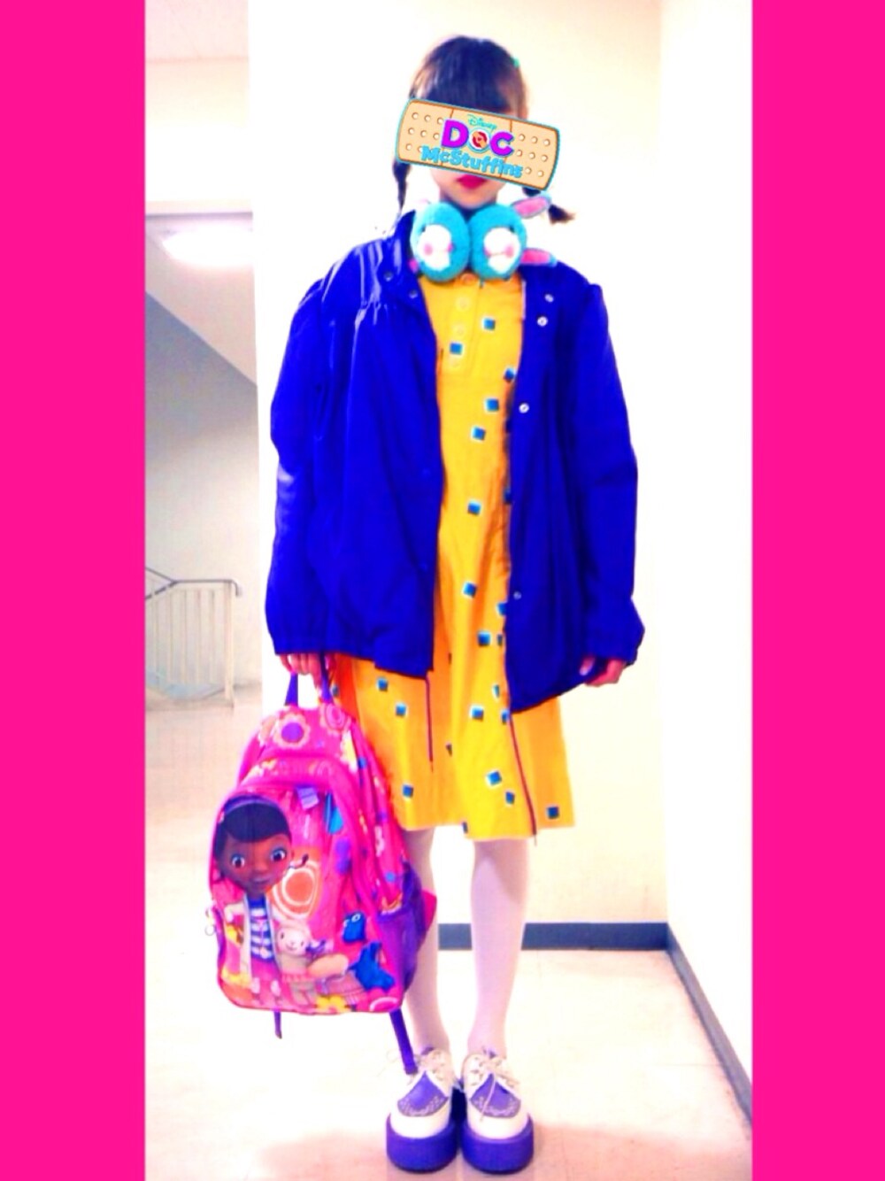 紫ジャケット.古着.390円 ワンピース.古着.KINJI.1000円 うさぎのイヤマフ.390円 三つ編みにレースリボンつけてます ワンピースの柄の色と、ジャケット、イヤマフの色を合わせました🎵