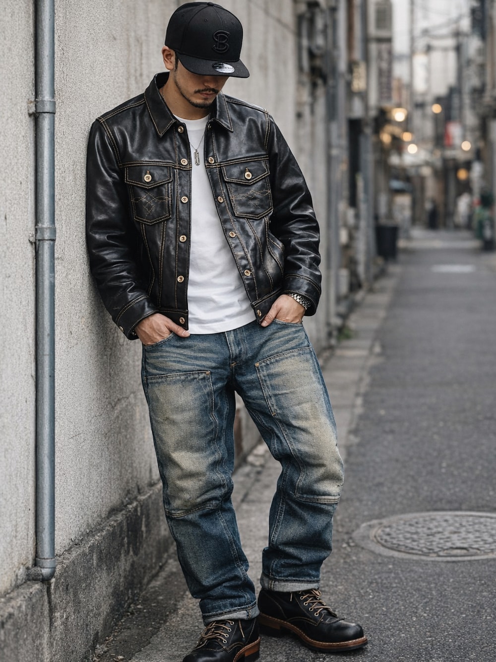 AIファッションコーデのデニムパンツ「PRISON BLUES ダブルニーワークジーンズ」を使ったコーディネート