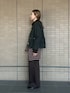 身長:158cm/体型:標準/普段サイズ:34、S、8/着用サイズ:10 ◾️コーディネートポイント 丈感がコンパクトなので私物のトップスを巻いて腰回りをカバーしながらカラーや柄を取り入れてみました。着回しのバリエーションにもなります◎ ◾️着心地・サイズ感 ジャケットは10でサイズアップして着用しています。8よりゆとりが出てより着やすいです。
