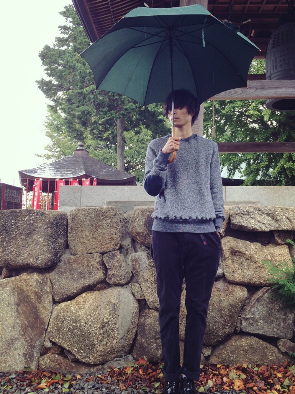 前髪で前が見えないトトロです。 ガーメンツのスウェットはディティールに一目惚れしました。 エルボーパッチだとかギャザーだとかショルダーとか。 色も好みでした。 パンツはグラミチ×LEE×チャオパニックのコーデュロイです。 履きやすい。 池袋のチャオパニックで試着してたら傘置き忘れました。 明日まであるか不安です。
