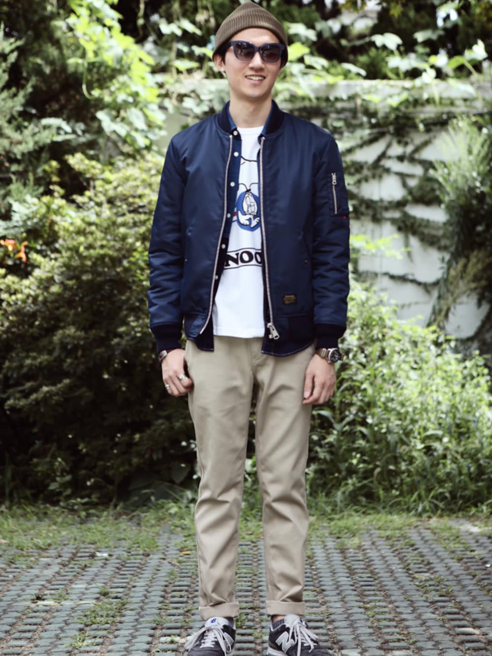 BARRELSのミリタリージャケット「MA-1 JACKET NAVY」を使ったコーディネート