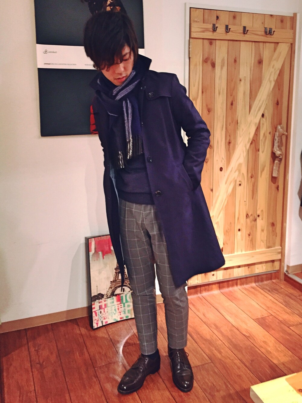yujiro miyakawaのマフラー「DRAKE'S: ウール/アンゴラ チョークストライプ マフラー (ネイビー)」を使ったコーディネート