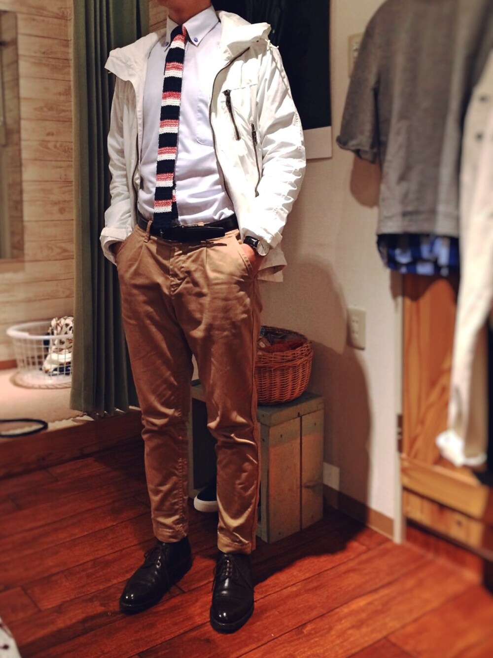 仕事着にマウンパ合わせてみました^o^ ニットタイでカジュアルさ増して、モチベーション高まる!