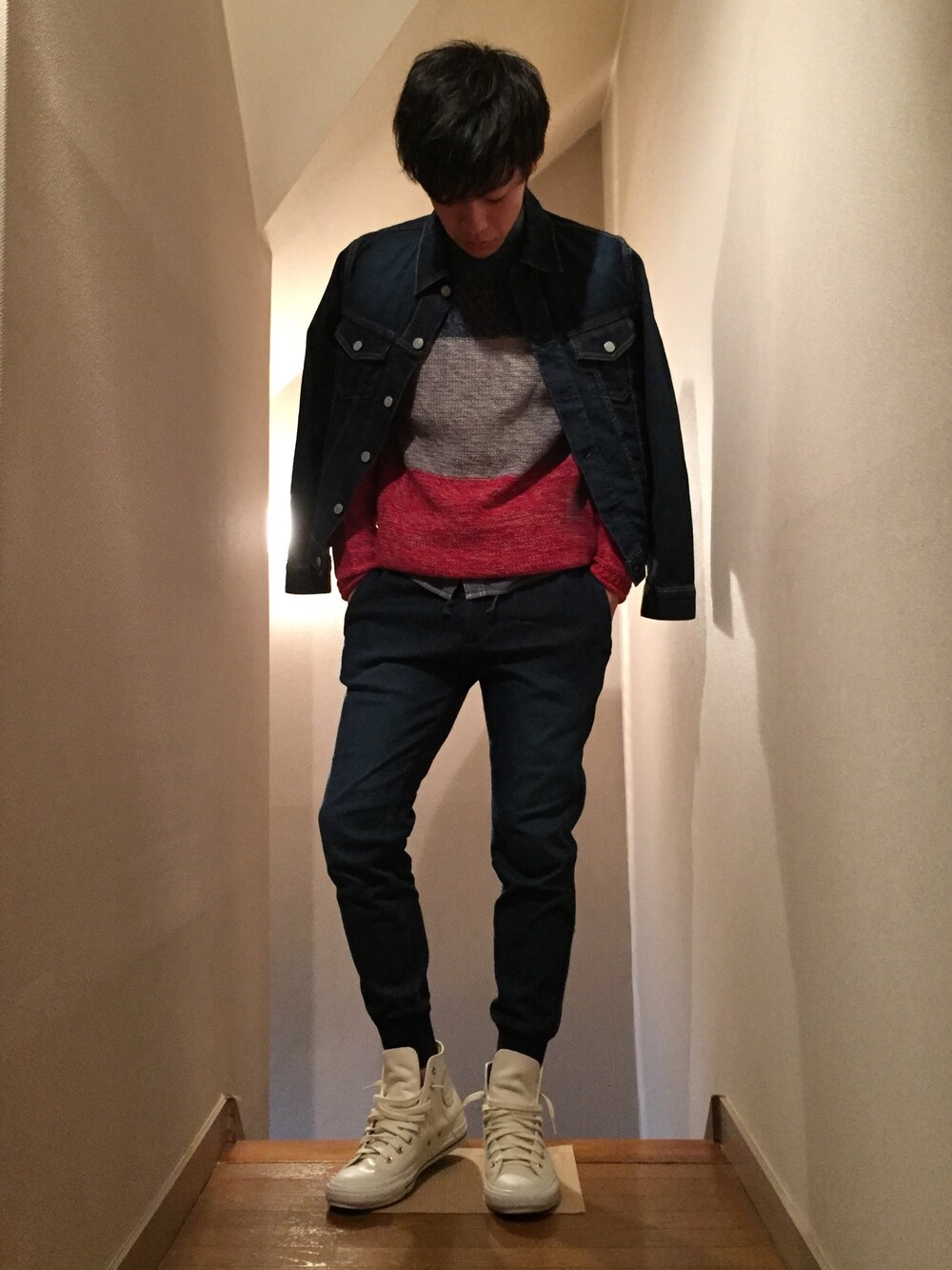ばそんのデニムジャケット「ストレッチブリーチクラッシュデニム ジャケット 【MADE IN JAPAN】 」を使ったコーディネート