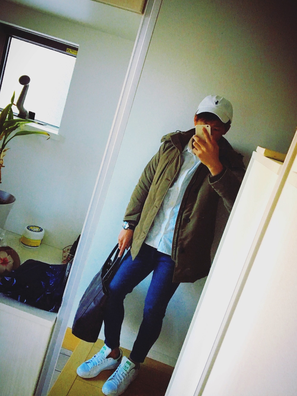 爽やかファッション! 緑のアウタージャケット前から欲しくて ABAHOUSEで購入しました!! 温かく、合わせやすいのでオススメです。 いいね、お願いします!!