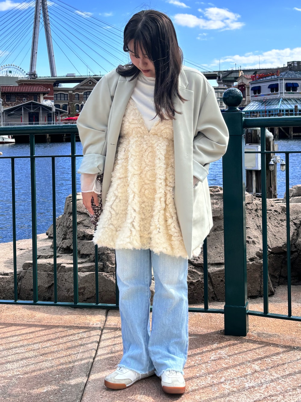 存在感のあるチュールワンピースをチュニックとして着てカジュアルに🌱