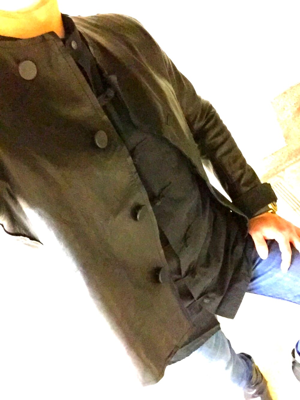 モノトーンシリーズ第2弾!!デデンっ!!! 初のライダースジャケット👕馬革なんです。 艶感・革質感、かんなりいいですっ!! そして。一捻り入れた黒シャツ。ボタンが可愛いんですこれまた。 いやー。オシャレって楽しい!!!