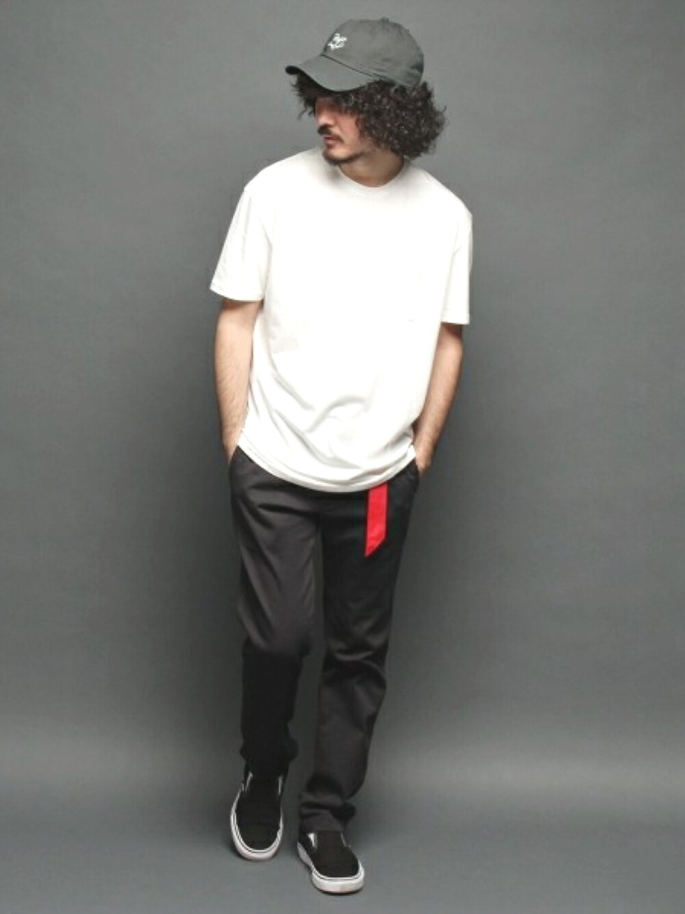 ビッグシルエットの白Tシャツは今季欠かせないアイテム。絶妙なシルエットなのでオススメです。グレーのトーンのアイテムと合わせか大人の雰囲気に。今年らしく、赤のベルトをワンポイントさしました。
