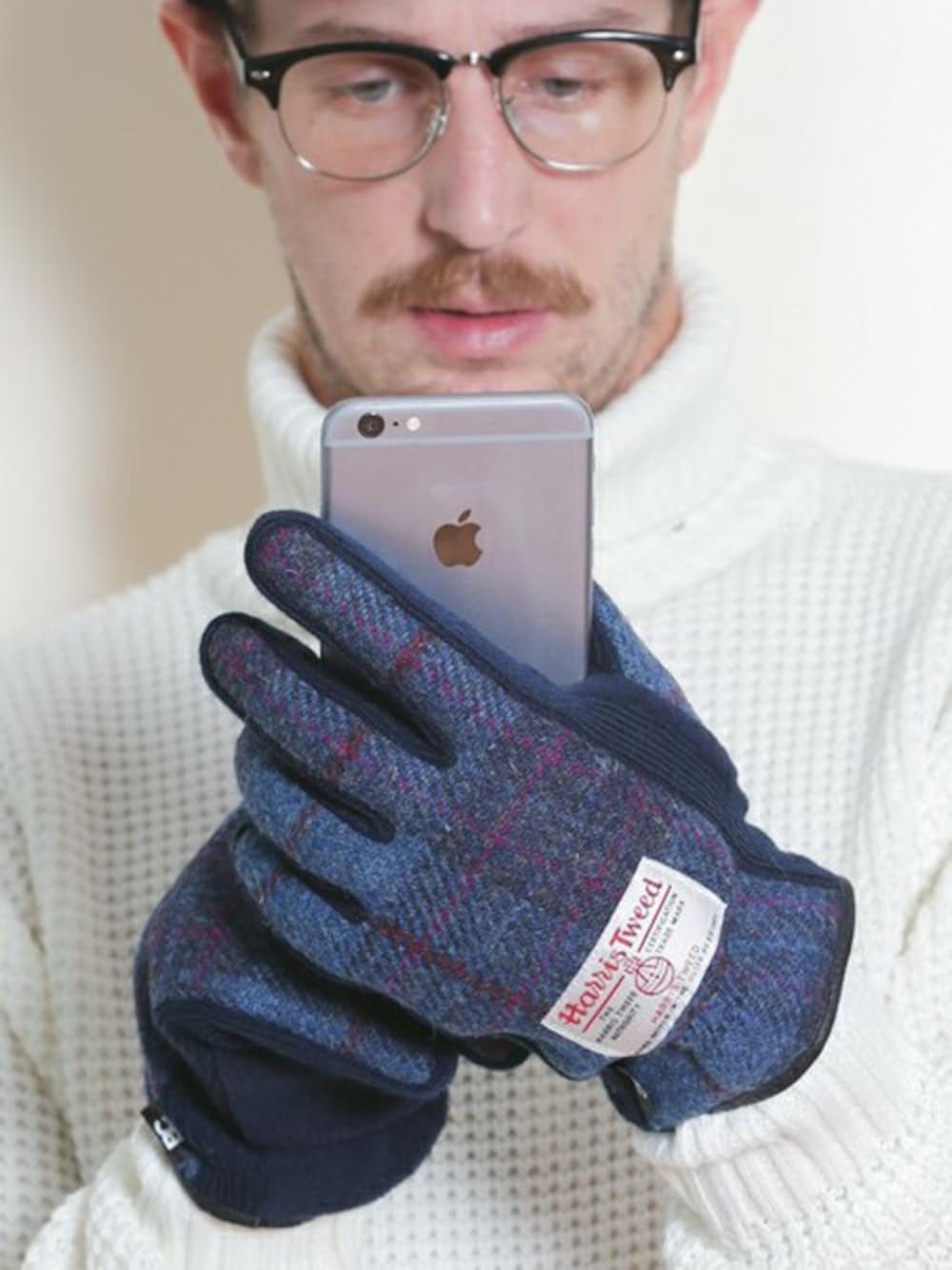 スマホ対応のハリスTWEED手袋をポイントにイチオシのタートルニットを合わせてます。