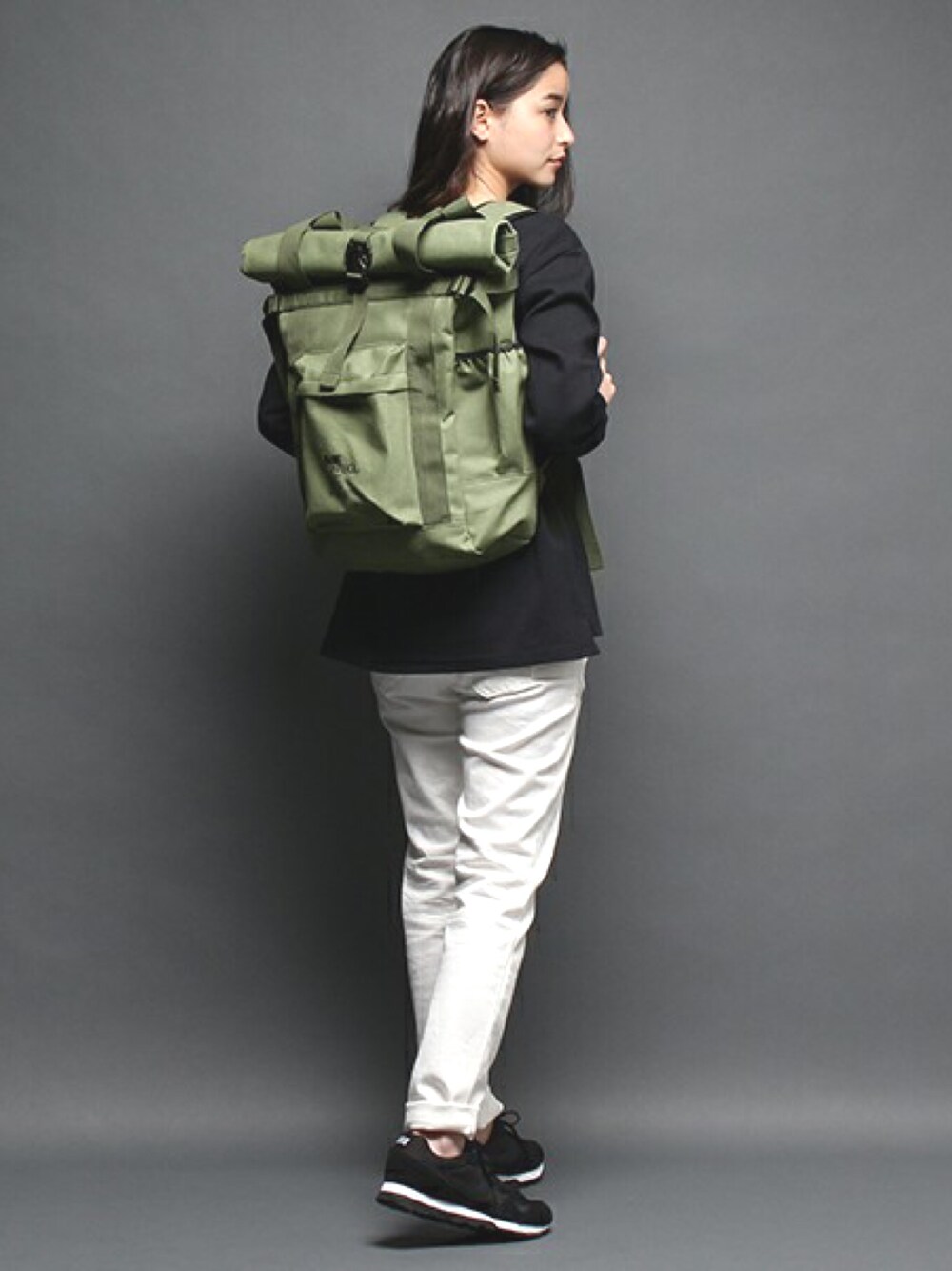 topsはメンズのMサイズを着用。あえて大きめのサイズを着用し、今年らしい雰囲気にスタイリング。女性ものにはない雰囲気が重宝します。 バックはトート型にもなる2way仕様。男女問わず使えるサイズ感もオススメです。