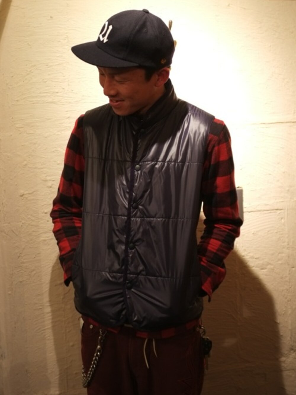BASEMENTWORKS.ASANOのベスト「■BW VEST リバーシブル仕様(表 : NAVY 裏 : 迷彩チャコール) 中綿シンサレート 」を使ったコーディネート