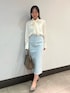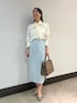 【ブラウス】 ドビー織りで華やか生地のブラウス。 ボウタイでさらに着映え力抜群! これからイベントが多い 年末年始にも活躍してくれそうです❤️ 白いブラウスですが 透け感はそこまで目立ちません。 【スカート】 歩きやすさ検証は、星3⭐️⭐️⭐️ 大股で歩くと 太ももが当たる感じはありますが 普通に歩く分には問題なしです😊 色は、ミントカラーですが 柔らかい色なので 色物でも挑戦しやすいです!✨ ウエストの内側はゴム仕様となっていて 締め付け感はありません! スリットが横に入っているのも 新鮮です♪ 【バッグ】 大人気のHINERIシリーズ。 シンプルながら、上品さもあり 大人女子にオススメ☝️ 合わせやすいデザインかつ 中にポーチ付き。 そして、そのポーチは単品で ショルダーバッグになる優れもの😆 マチもわりとあるので、見た目以上に お荷物入ります👍 【コート】 アンゴラを使用したコートなので ロング丈ですが、とっても軽いです!✨ 生地感も柔らかく、動きやすい❤️ アーム部分は、ゆとりのある作りで ジャケットの上や肉厚なニットの上からでも 着ていただけます😊 ブラウス、スカートともにご自宅でのお洗濯可能です!