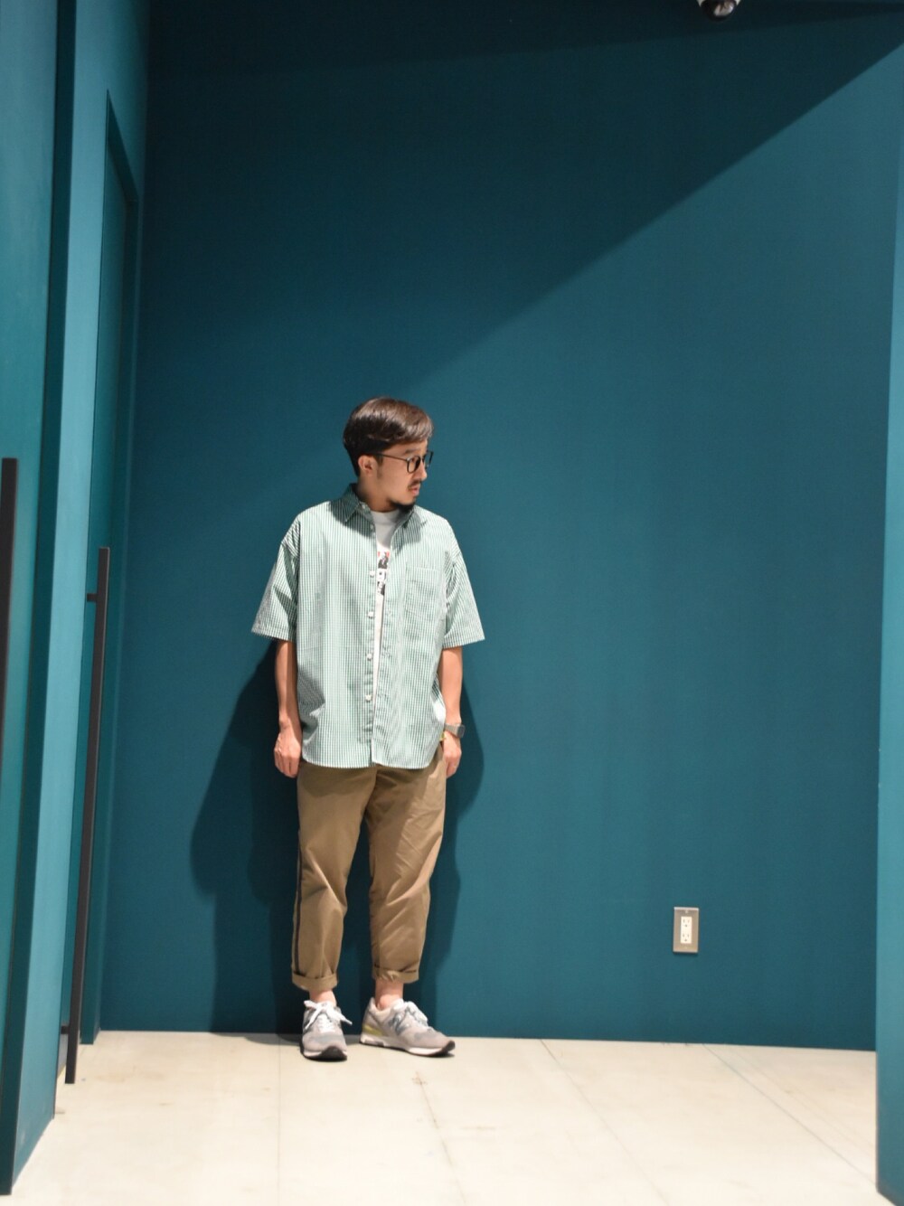 ちょっと分かりづらいけどグリーンのシャツ😊 ドロップ&テーパードのスタイリングがイイ 幅広く使えるスタイリング😆 これも個人的にはボタンをとめるのがオススメ😁 LINE ID @hotel koe tokyo お友達登録を宜しくお願いします🙋♂️