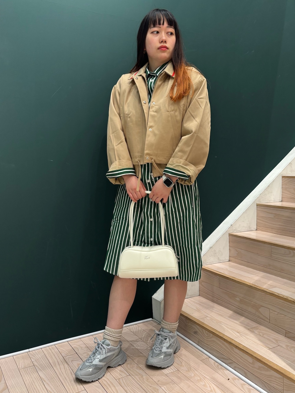 Ayaaaano(LACOSTE 心斎橋店)のブルゾン「配色ライン レイヤードジャケット ジップアップブルゾン」を使ったコーディネート