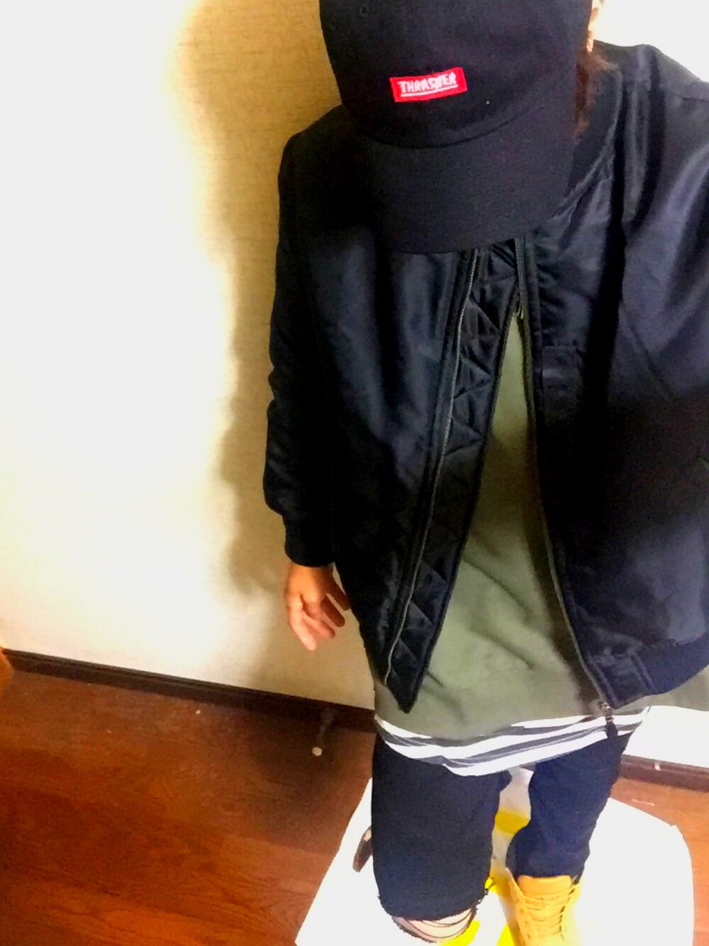 ストリート系〜。 結構お気に入り〜😏 カーキのZIPアップスウェットいいね🙄