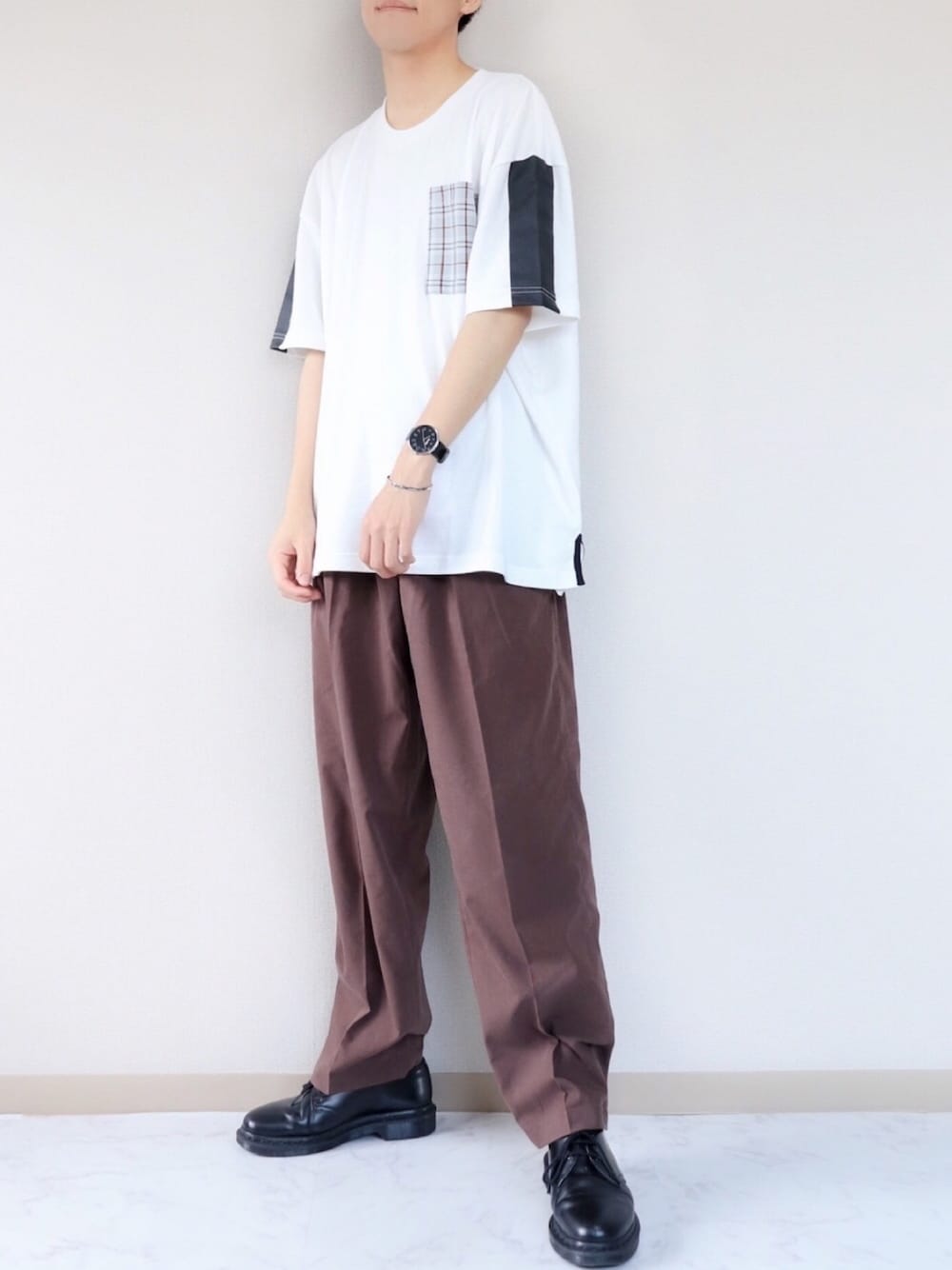 あっ君のTシャツ/カットソー「袖ライン チェックポケット オーバーサイズ 半袖サイドスリットカットソー【ファッションインフルエンサー がらし×anown 限定コラボ】」を使ったコーディネート