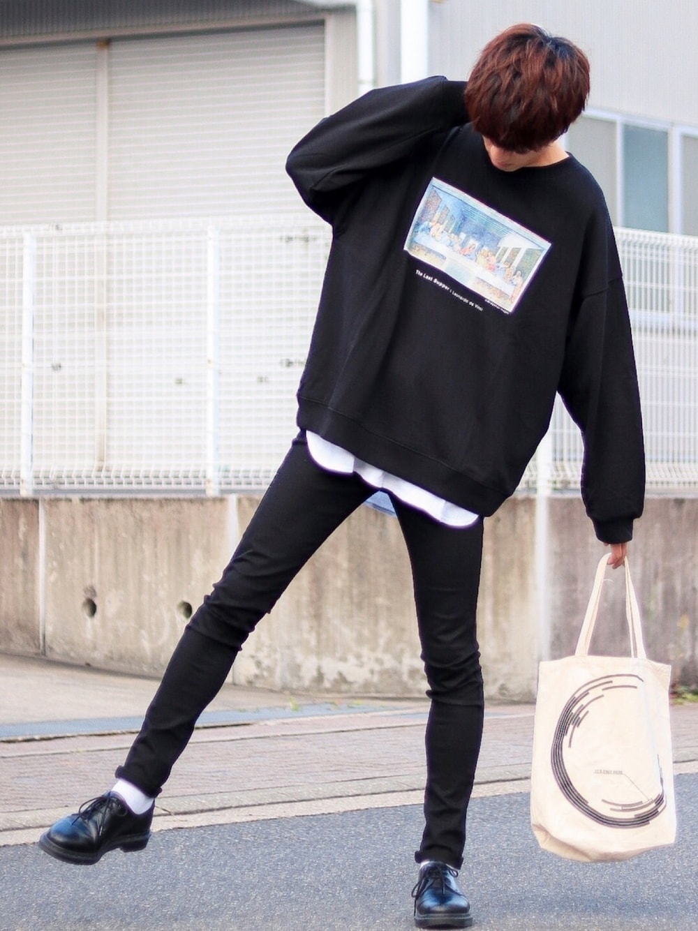 あっ君のスウェット「別注プリントART ビッグシルエット プルオーバー スウェット」を使ったコーディネート
