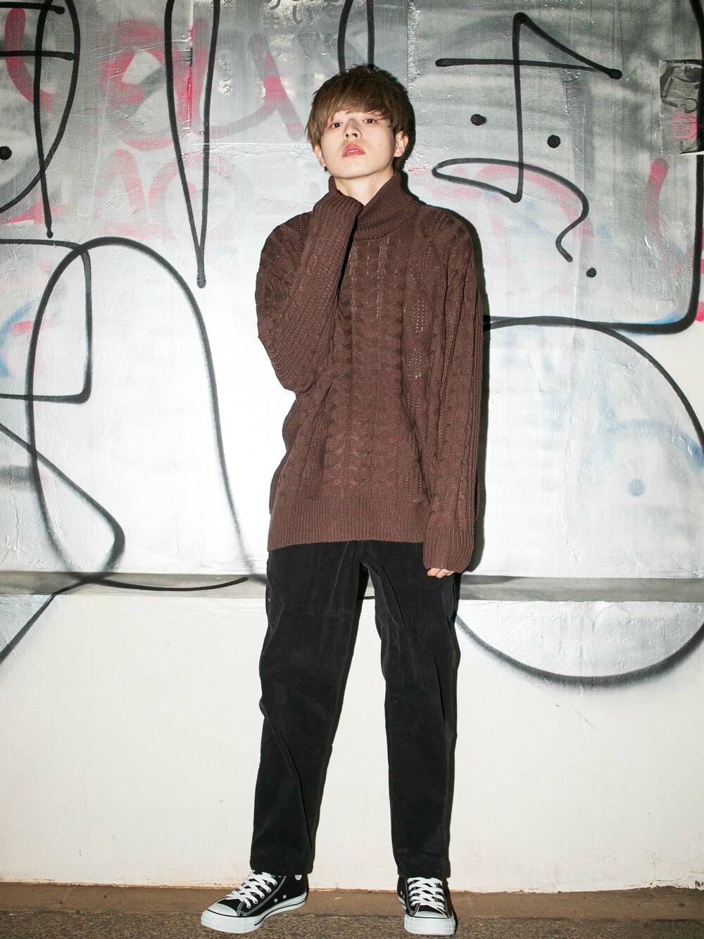 -のニット/セーター「【BASQUE -enthusiastic design-】ビッグシルエット タートルネック フィッシャーマン ケーブル編み ニット セーター」を使ったコーディネート