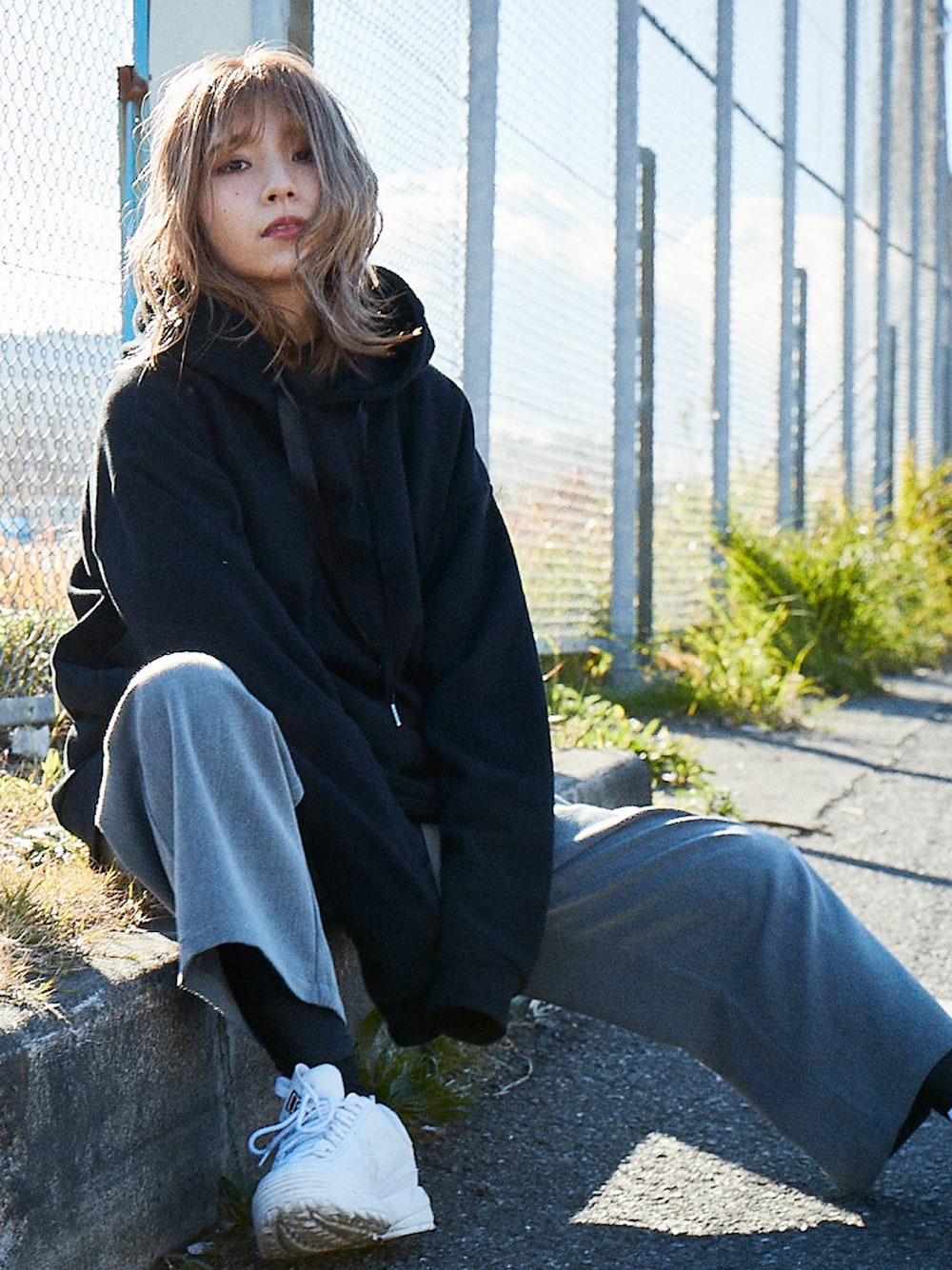 -のパーカー「【BASQUE -enthusiastic design-】ピーチスキン オーバーサイズプルオーバーパーカー」を使ったコーディネート
