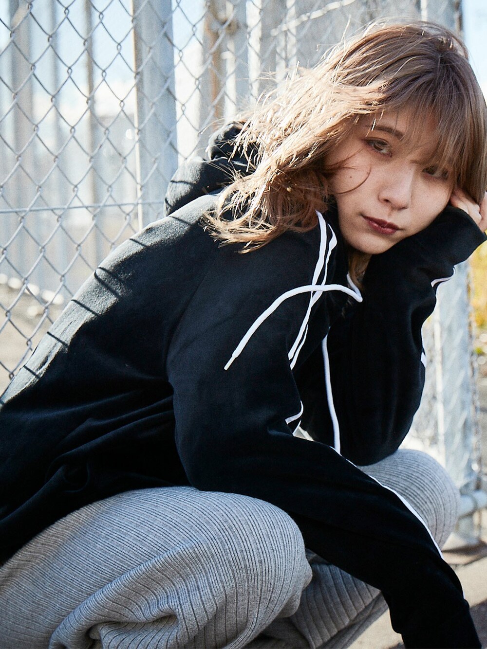-のパーカー「【BASQUE -enthusiastic design-】袖ラインスウェードパーカー」を使ったコーディネート