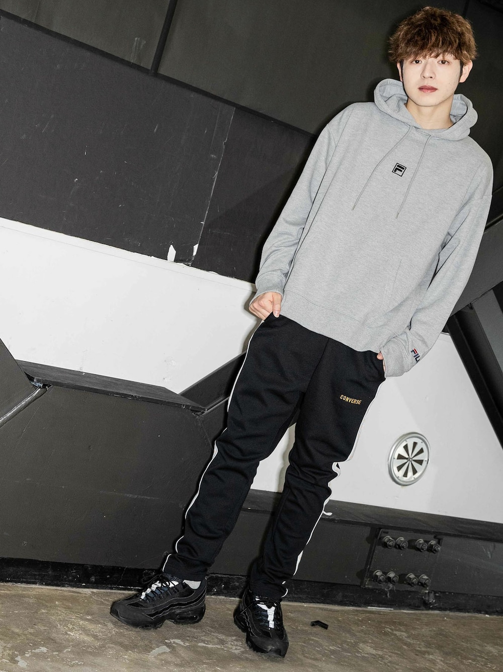 -のパーカー「【BASQUE -enthusiastic design-】FILA/フィラ BASQUE magenta 別注 ロゴ刺繍オーバーサイズ プルオーバーパーカー」を使ったコーディネート