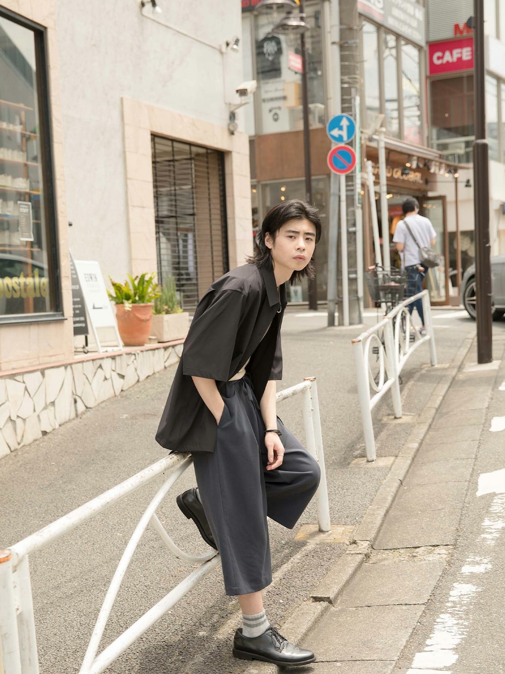 -のスラックス「TRタックワイドシルエットハーフスラックスパンツ/ワイドショートパンツ」を使ったコーディネート