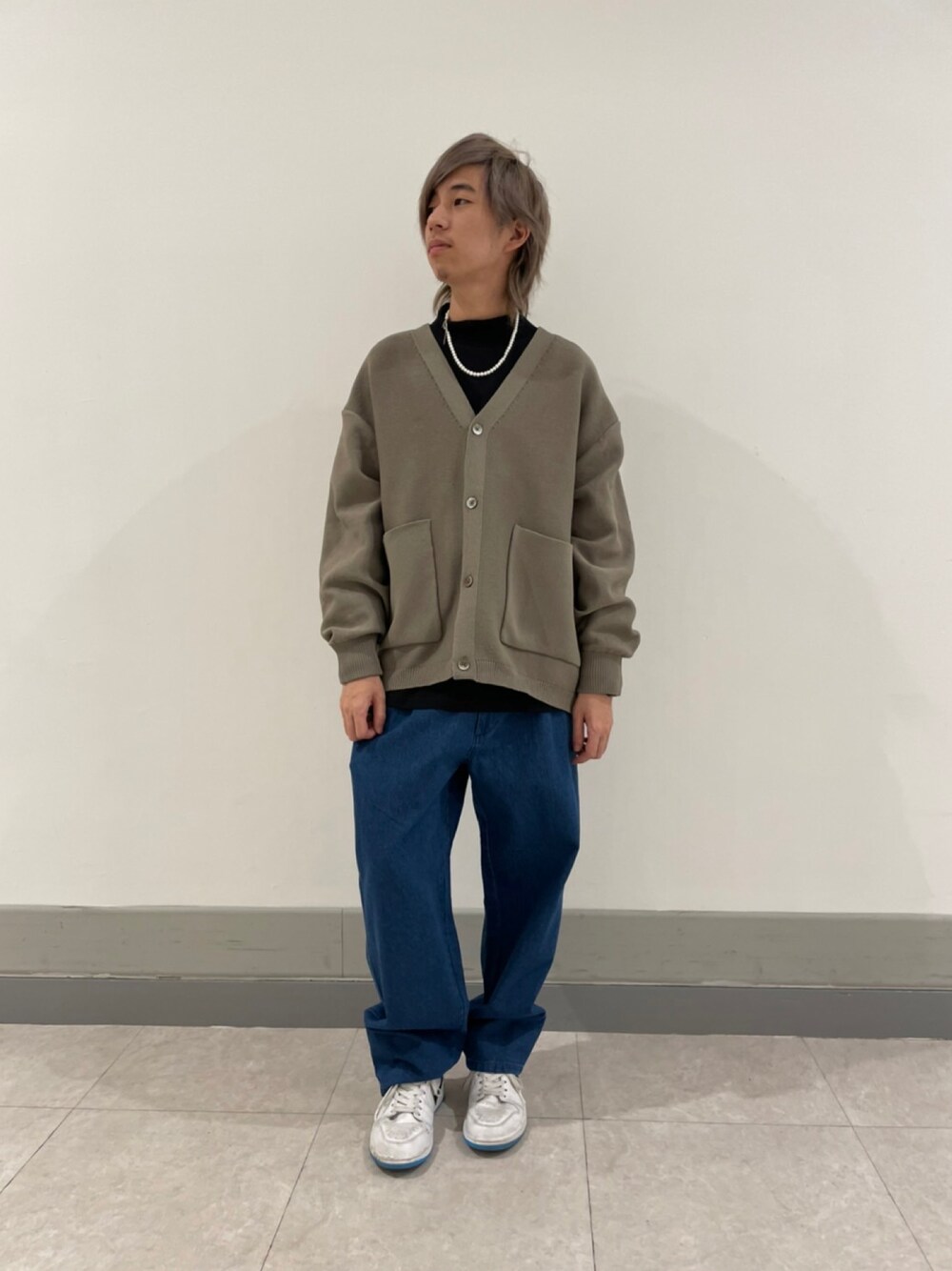 新作春物ニットカーデを使ってゆったりコーデに!! 着心地も良くカラーのバリエーションが豊富で色んなコーディネートに合わせれます♪ ヘビロテ間違いなしの春物オススメアイテム!!