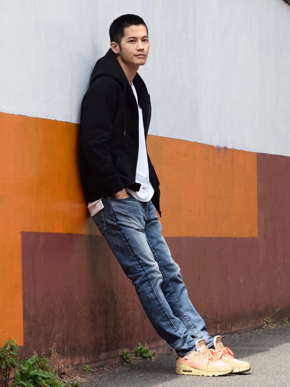 RE:LORE™のデニムパンツ「14.5oz Slim-fit Tapered Hyper Stretch Denim Jeans Mid Blue 19S-201」を使ったコーディネート